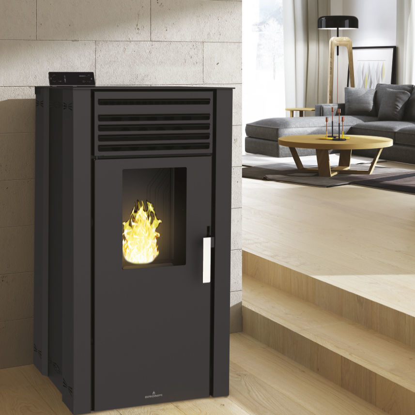 The Bronpi’s Eva, a cutting edge pellet stove designed to effortlessly disperse heat across spacious interiors, this heating powerhouse not only amplifies comfort but also enriches the environment with its discreet, modern lines.