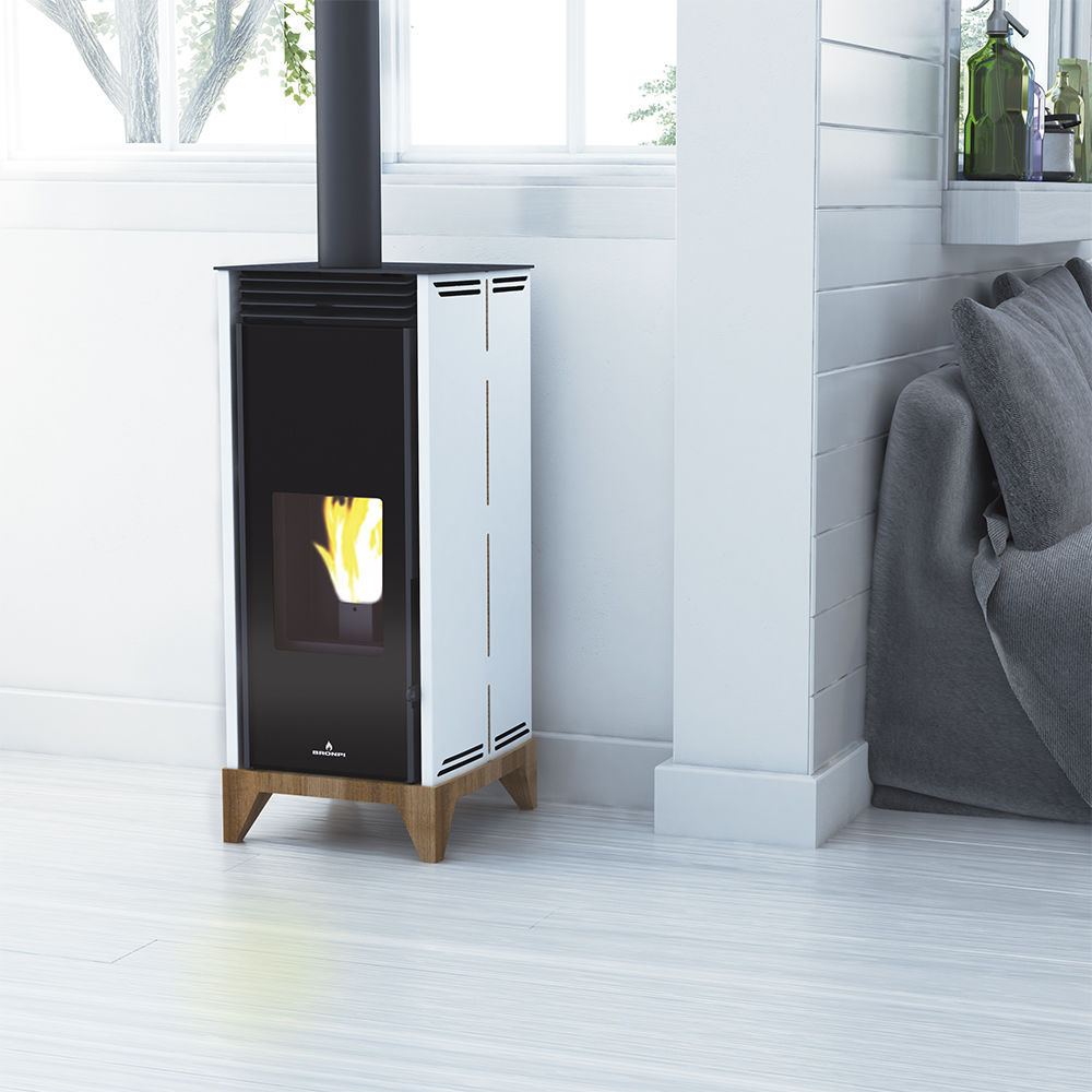 The Free 6 Vision Pellet Stove has a double combustion and double chamber system. Natural draft pellet stove that does not require any electrical or electronic support. Ideal in all situations where there is no connection to the electricity grid. Screen printed black glass door. Includes base in wood.