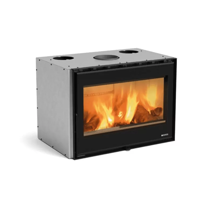 The Nordica INSERTO 80 WIDE 5.0 wood-burning insert is for fireplaces with a panoramic view of the fire and a cast iron-Nordiker hearth, it has a thermal output of 12.4 kW which heats up to 355 m³.