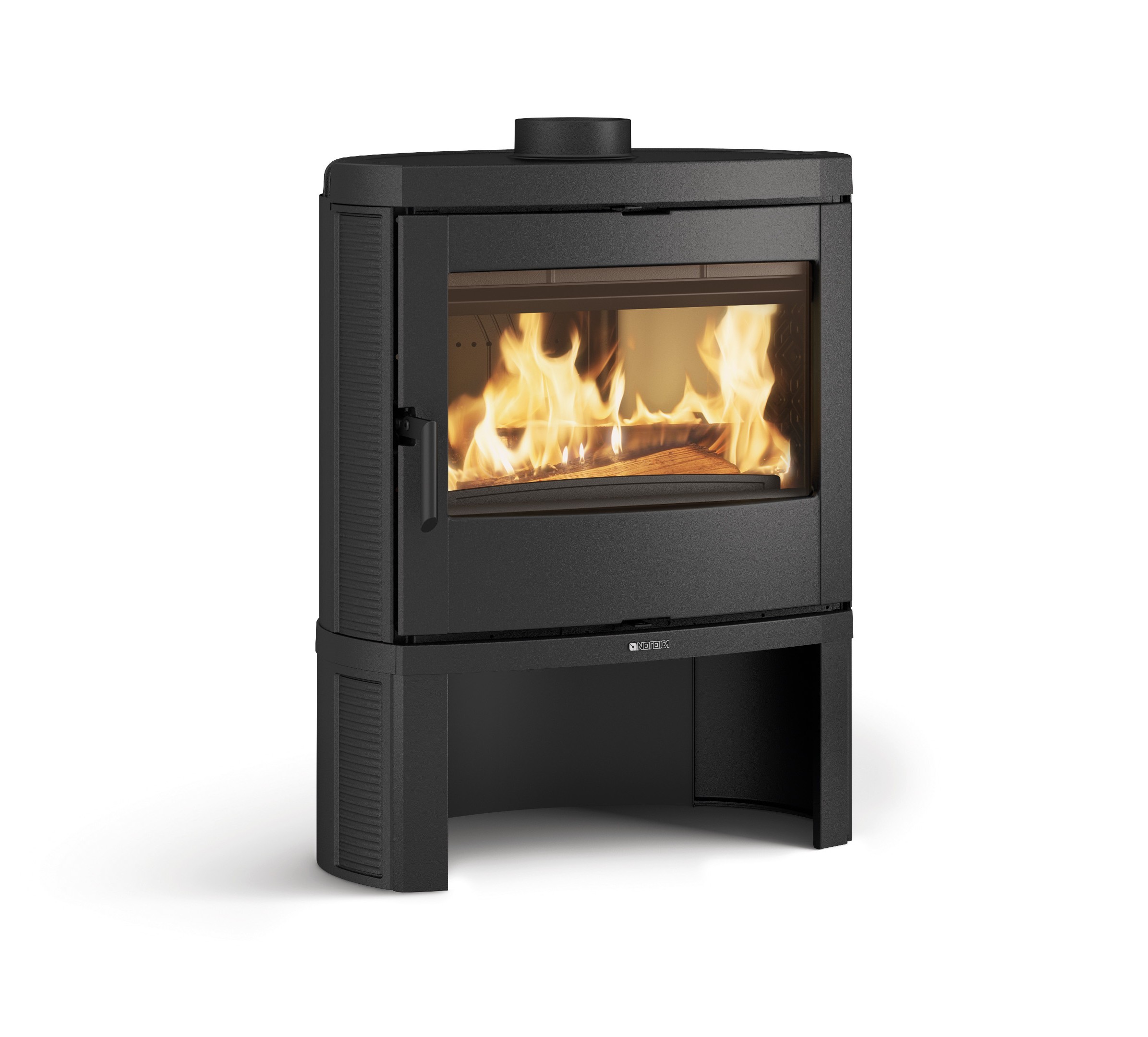 The La Nordica Jennifer 2.0 wood burning stove is contemporary curved stove with an curved cast iron door. The main body of the stove is black with an cast iron top and outer layer. The La Nordica Jennifer has a nominal output of 7.5kW with a maximum output of 9.2kW which gives this stove the ability to provide sufficient heat to medium to large sized rooms.