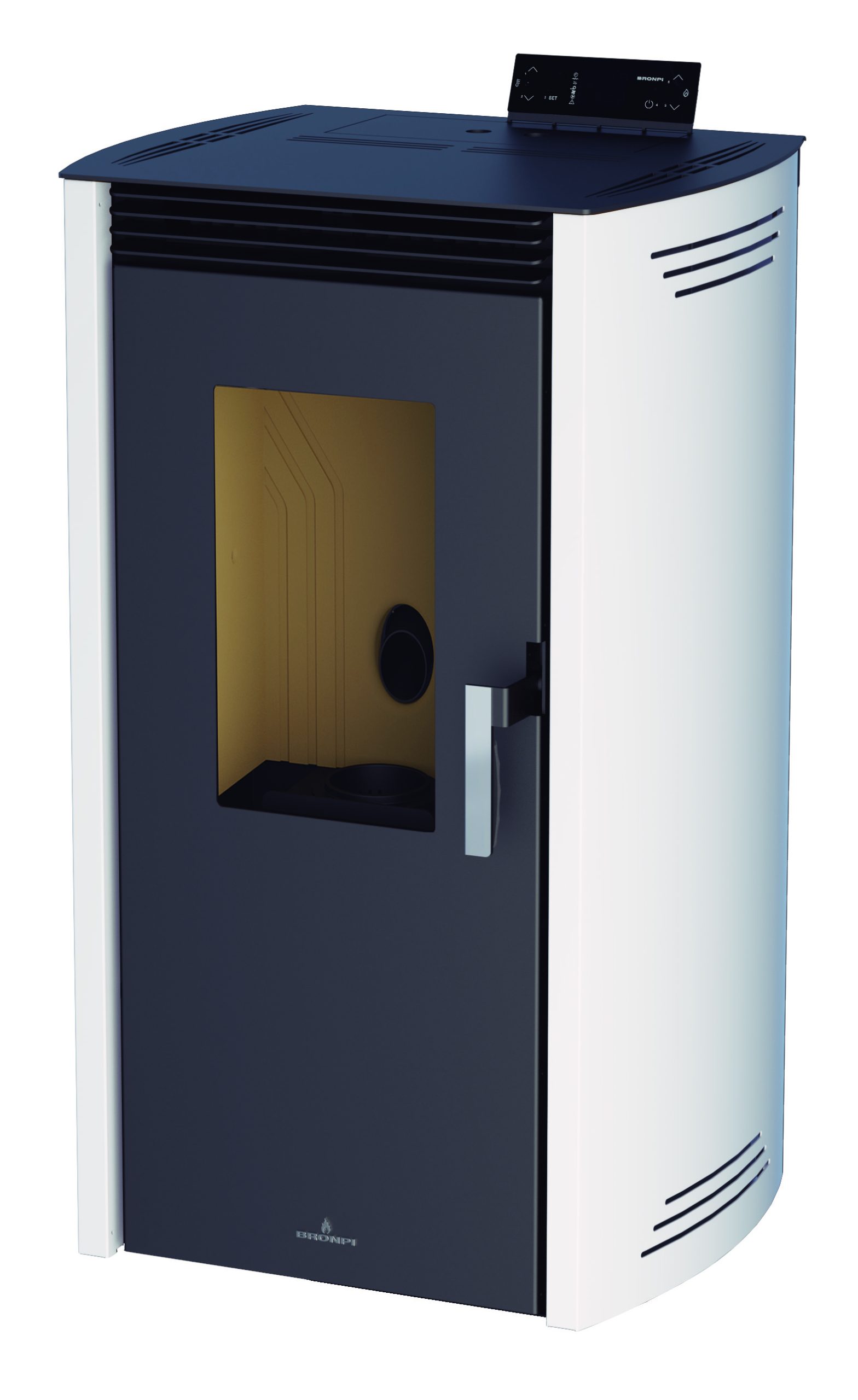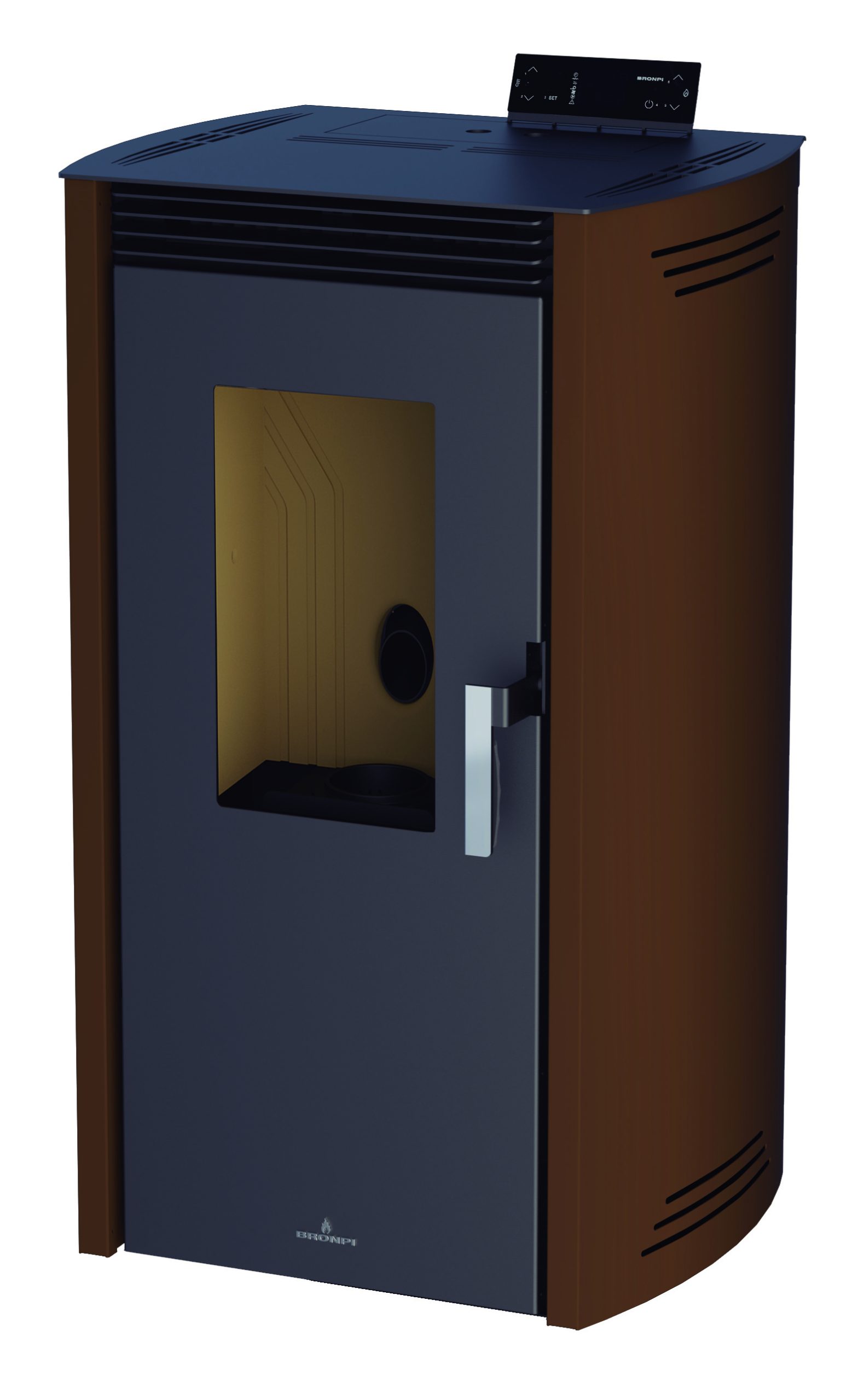 The Bronpis Noa Pellet stove with high thermal efficiency and a heating capacity of up to 258m3. It also includes a remote control, a new anti-flameback system, and a pressure valve for the combustion chamber.